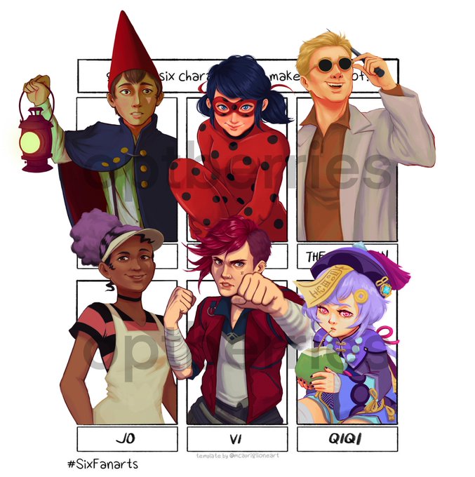 finally done with this omg 😭😭 this took me way too long to finish /(;-_-) thanks to everyone who suggested characters! ᕕ( ᐛ )ᕗ✨ #SixFanartsChallenge #sixfanarts twitter.com/optberries/sta…