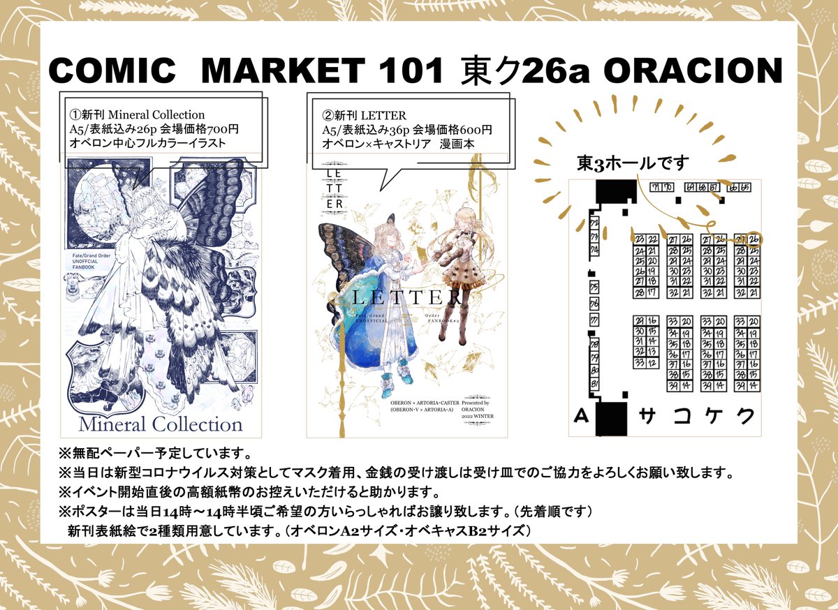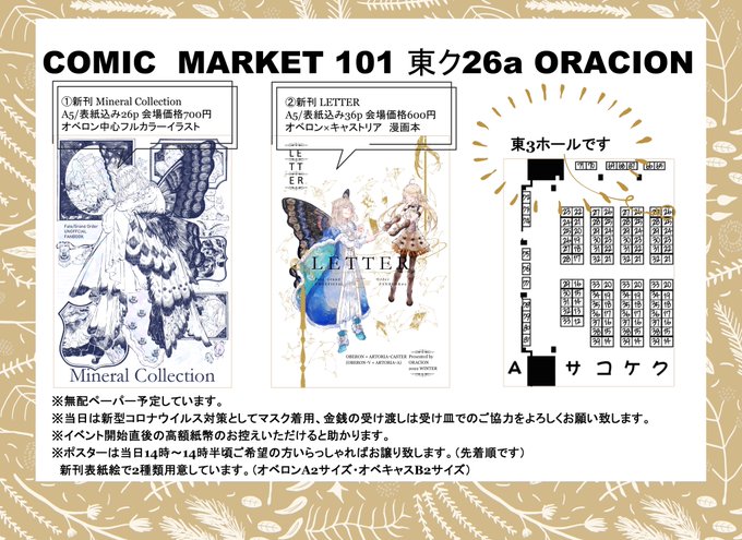 C101おしながき📝当日は宜しくお願い致します! 2022.12.30 1日目東ク26a「ORACION」 新刊サンプル① pixiv.net/artworks/10383… 新刊サンプル② pixiv.net/artworks/10399… 会場 webcatalog.circle.ms/Circle/Map/168… サークル情報 webcatalog.circle.ms/Perma/Circle/1…