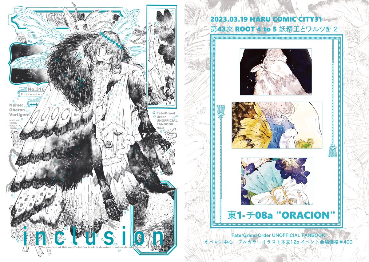 【春コミ/妖精王とワルツを2】新刊サンプル「inclusion」 東1-チ08a「ORACION」 オベロン中心フルカラーイラスト本です。 表紙全体ポーラライト箔仕様(前後遊び紙等) 通販🐯 ecs.toranoana.jp/joshi/ec/item/… サンプル📝 pixiv.net/artworks/10621…