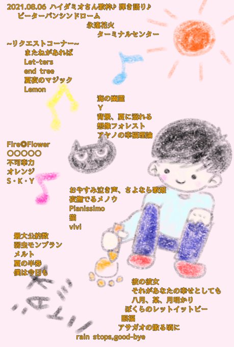 ハイダミオさんの配信のセトリ♪ ミオさんのバラードは至極🧡アゲアゲなのも3150‼️ 1ヶ月ぶりのミオさんの声も変わらずに心に染み渡って全身満たされました✧︎ #ハイダミオファンアート ミオさん大好き‼️