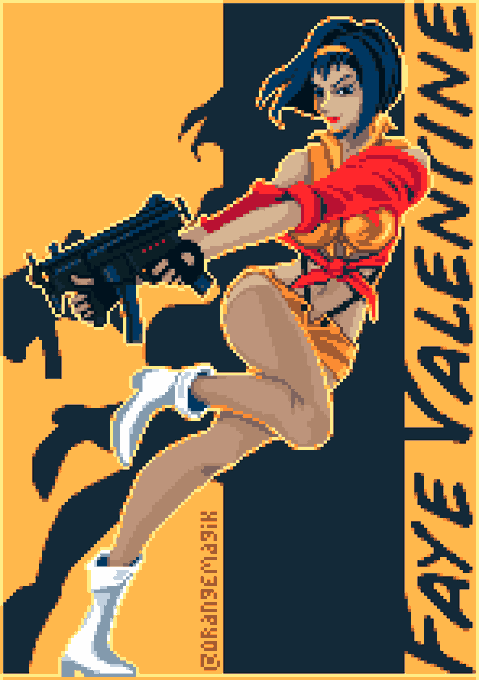 Well, It's time to remember my very first pixel-fanart dedicated to Cowboy Bebop. It is from 2015, I guess. ALSO: the most important close-up. #CowboyBebop #pixelart #ドット絵