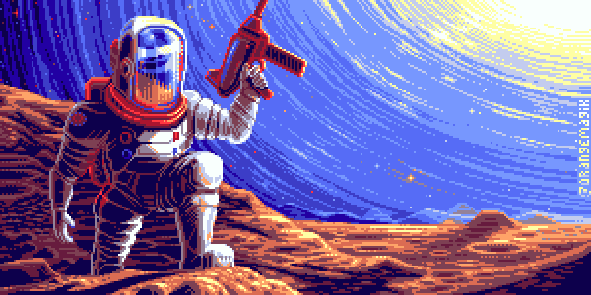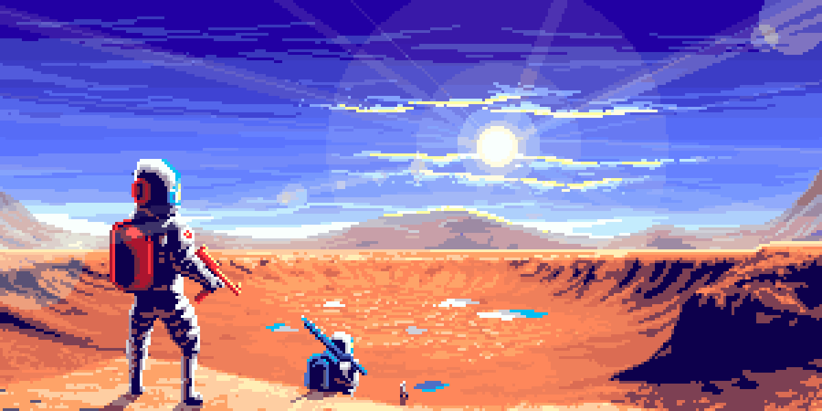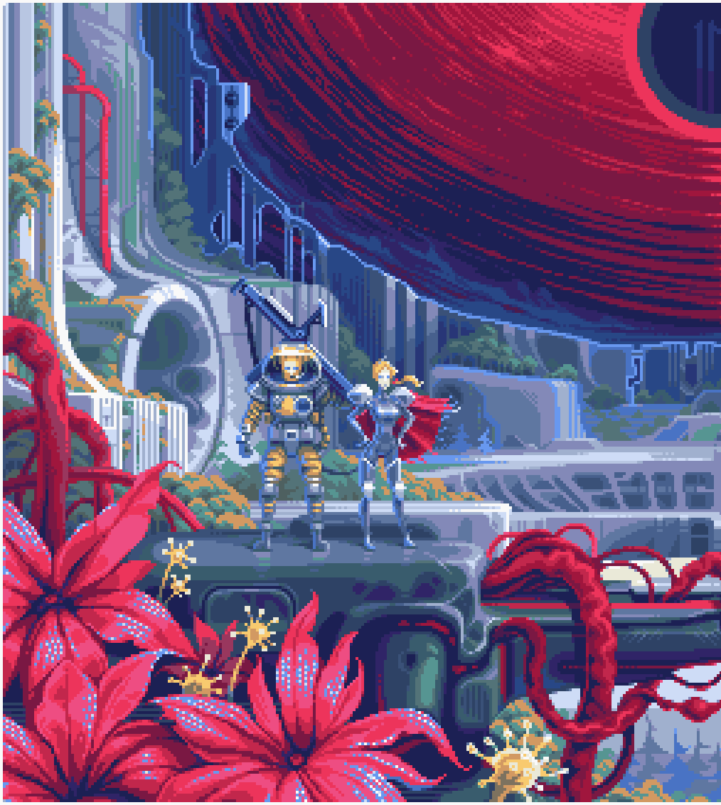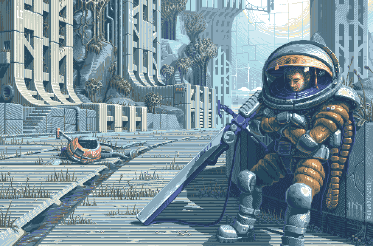 Sci-fi postapocalyptic #Landscape for @Pixel_Dailies Commodore 64 palette #pixelart #pixel_dailies #ドット絵 #commodore64 NCx2: i.imgur.com/Od3WBds.png