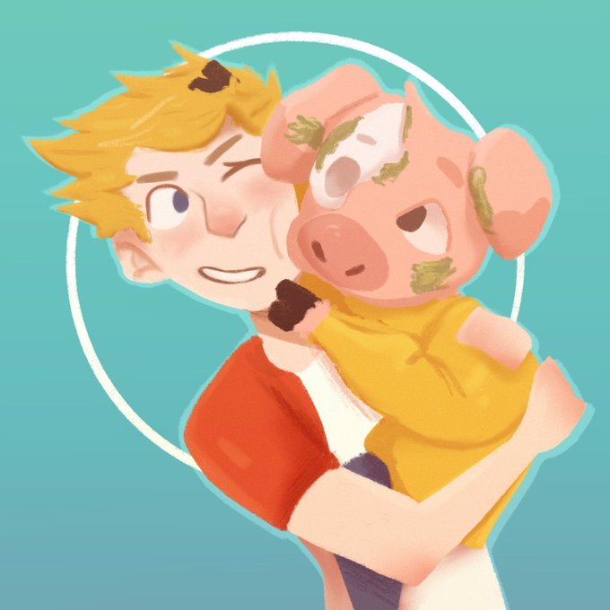 Micheal and Tommy :D someone in my chat said Micheal would love Tommy’s hair since he’s a pigling and Tommy has gold-ish hair and then this happened- #dreampsmp #dreampsmpfanart #tommyinnitfanart #michealfanart