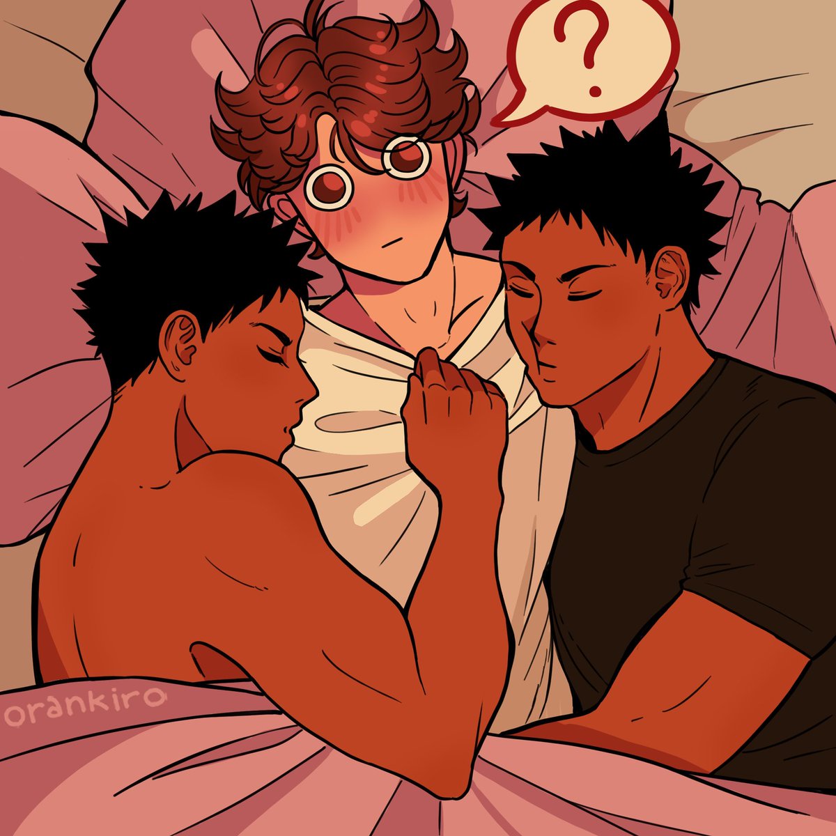 145 935 oikawa, 19 and pining for his best friend in another country, wakes up to TWO of his iwa-chans cuddling him. one is 21 and tells him they jst started dating. the other is 27 and says theyre about to marry... happy 4.14!! #iwaoiiwa #iwaoi 23/04/15 22:13
