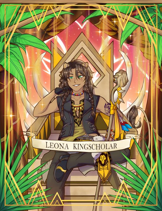✨ Kneel before your King, Leona Kingscholar!! 🦁👑 (REPOST: bc I made his skin too light the first time around😰) #twistedwonderland #twstファンアート