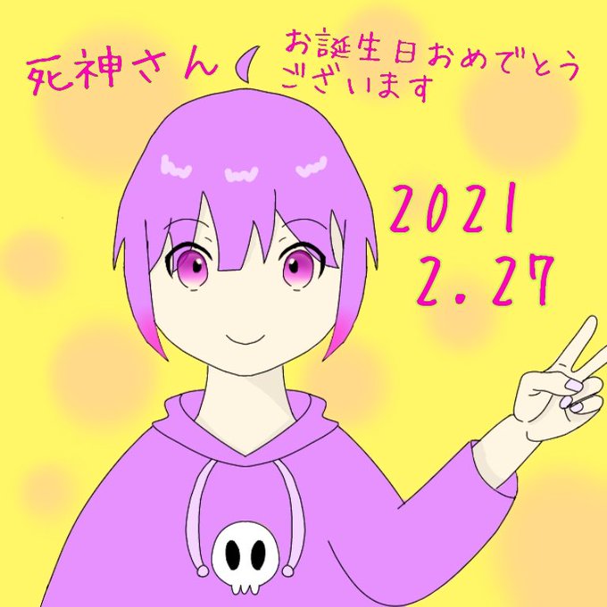 0 4 死神さんお誕生日おめでとうございます🎉🎉 #しにちゃんはっぴよばーすでー2021 #しにがみくん誕生祭2021 #しにがみあーと 21/02/27 19:13