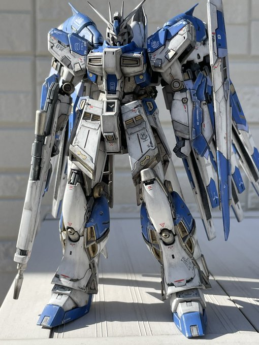RG Hi-νガンダム 完成〜♪ めっちゃカッコよい 本当に 使用感だけだそうと思ったら、しっかり汚してました… 見えにくけけど、バーニアだけ大型に変更 #ガンプラ好きとつながりたい #ガンプラの画像を貼るとRTされると聞いて