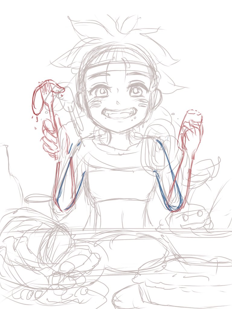 #このタグを見た人はラフ画とその完成絵を見せる 一番最近描かせて頂いた絵で! 顔描くのが一番楽しいので、ラフの時点でもしっかり目に描く事が多いです( ˘ω˘)www 小物とか洋服は、線画を描くときに細かく描き込むのが楽しくて好き✨