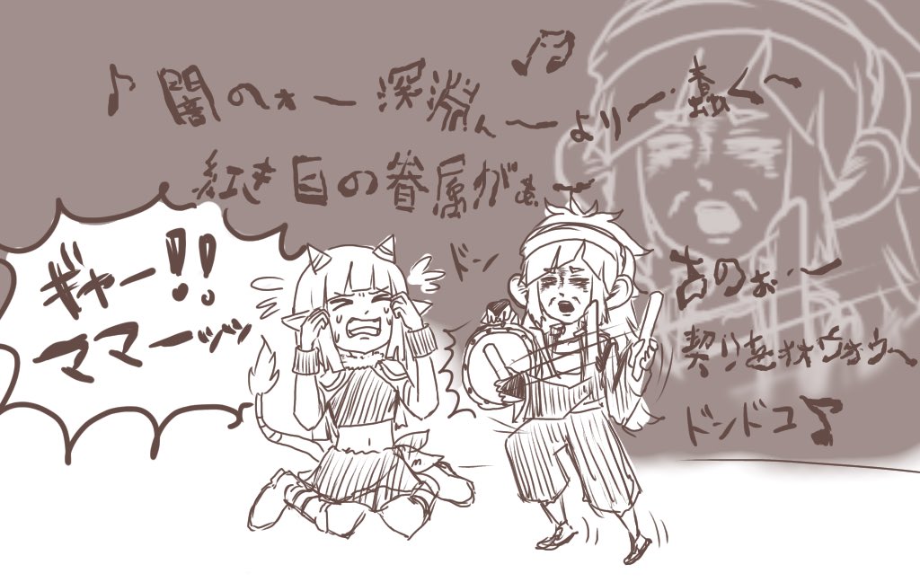 先日描いて頂いた四コマが素敵すぎたので、めっちゃ雑なのですがその先っぽい物を自分も描いてみたり…w こらふさん家のジョエン君、ラコロ君お借りいたしました…! twitter.com/korafu198ninji…