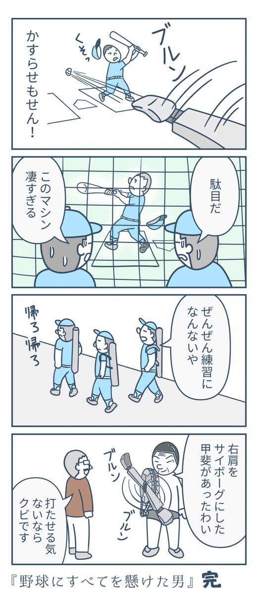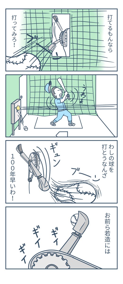 激しく負けず嫌いな男 ~野球編~ 野球ネタが多めになってきました。 わたくし、野球が大好きなのです😄 #4コマ #4コマ漫画 #漫画が読めるハッシュタグ #剛腕 #バッティングセンター #野球人生