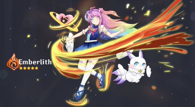 "Howey! I'm Emberlith and I'm a traveller from distants stars! A Vision? I dont know, I just breath fire and fly as the dragon I am. Oh, him? His name is Hoshi... but dont mind him, its just my emergency food" #GenshinImpact #genshinimpactfanart