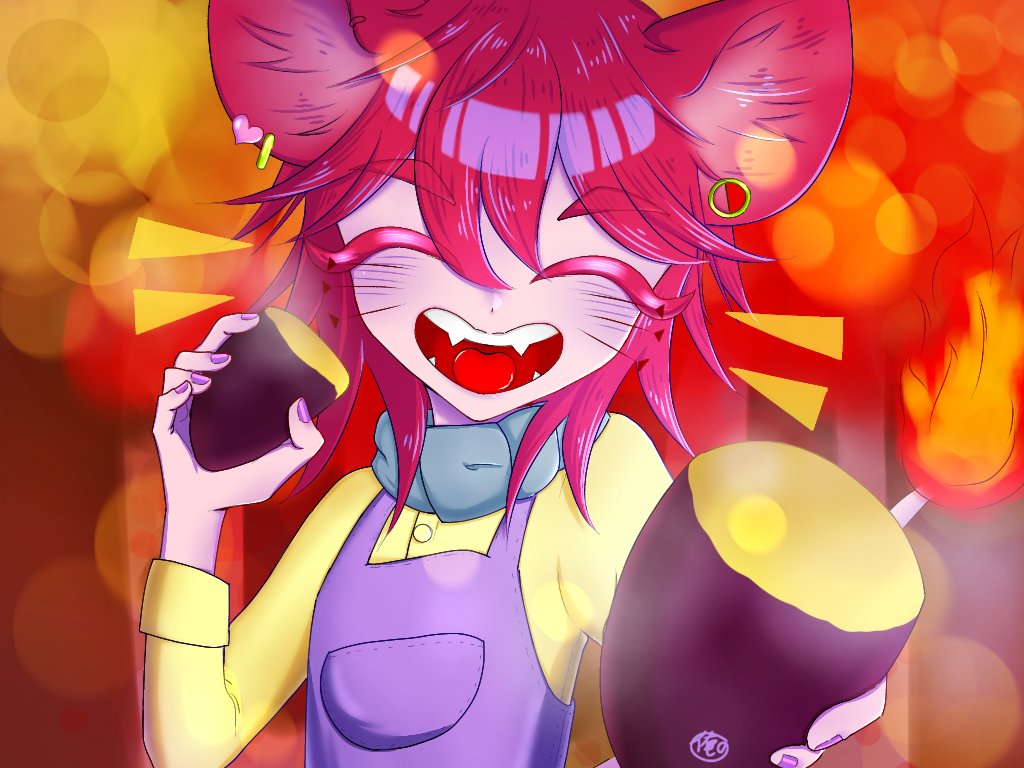 焼き芋分けてくれるイラストです( ´꒳` ) #イラスト #オリキャライラスト #絵柄が好みって人にフォローされたい #秋の創作クラスタフォロー祭り このあとめっちゃやけどした (受け取った人の手)