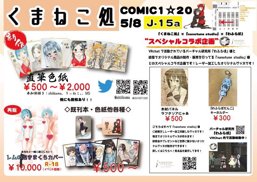 あなたのサークル「くまねこ処」は、コミックマーケット101で「土曜日東地区 "ハ " 24a」に配置されました!コミケWebカタログにてスペース配置場所公開中です! webcatalog.circle.ms/Circle/Map/168… #C101WebCatalog 頒布情報とお品書きを公開いたしました!!