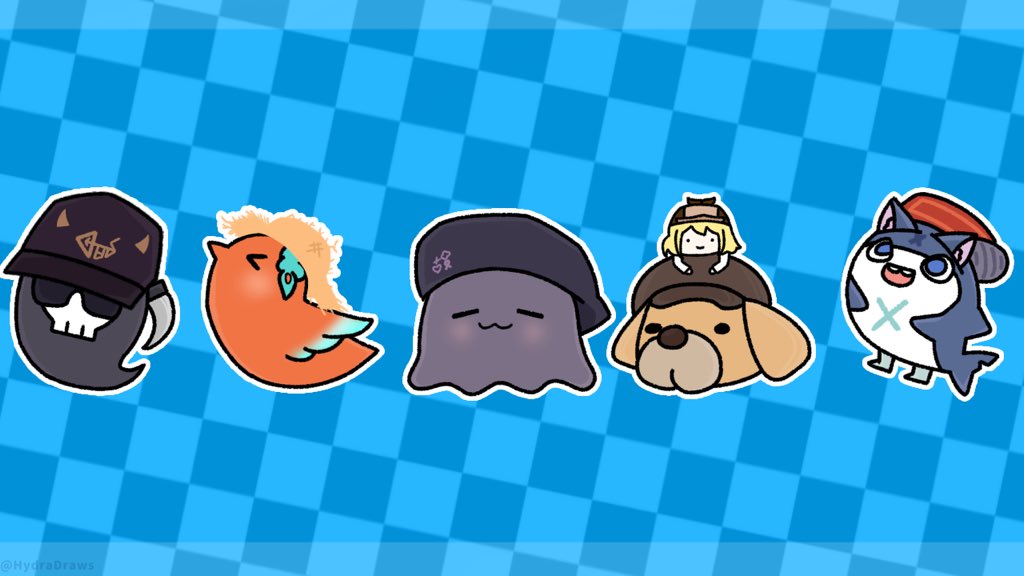 So I drew the #HoloEN mascots wearing the hats from their new outfits! As for Bubba, I decided to use smol Ame instead just like from her new outfit, she has a smol Bubba on the top of her hat ❤️ and 🔁 are appreciated #callillust | #ArtsOfAshes | #inART | #ameliaRT | #gawrt