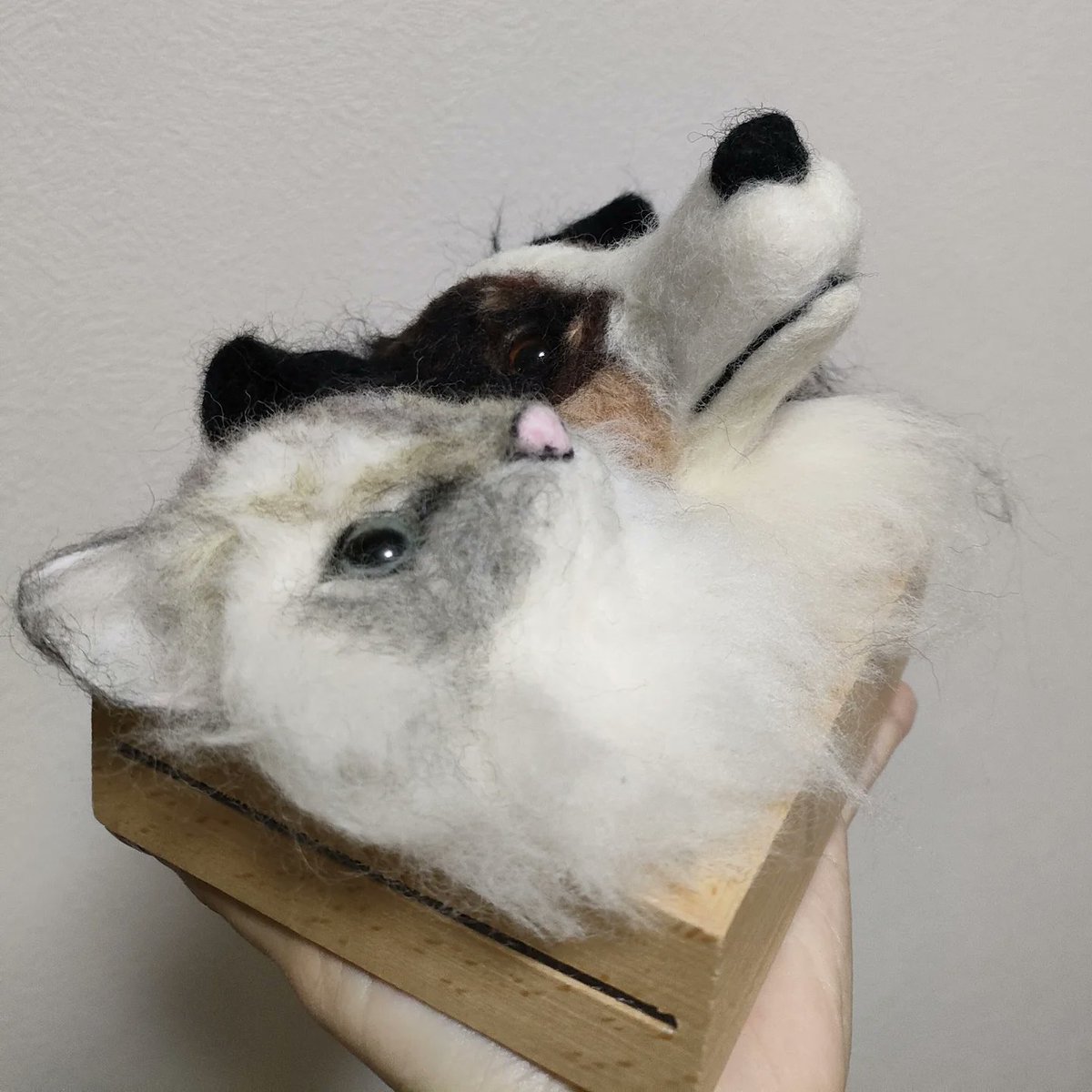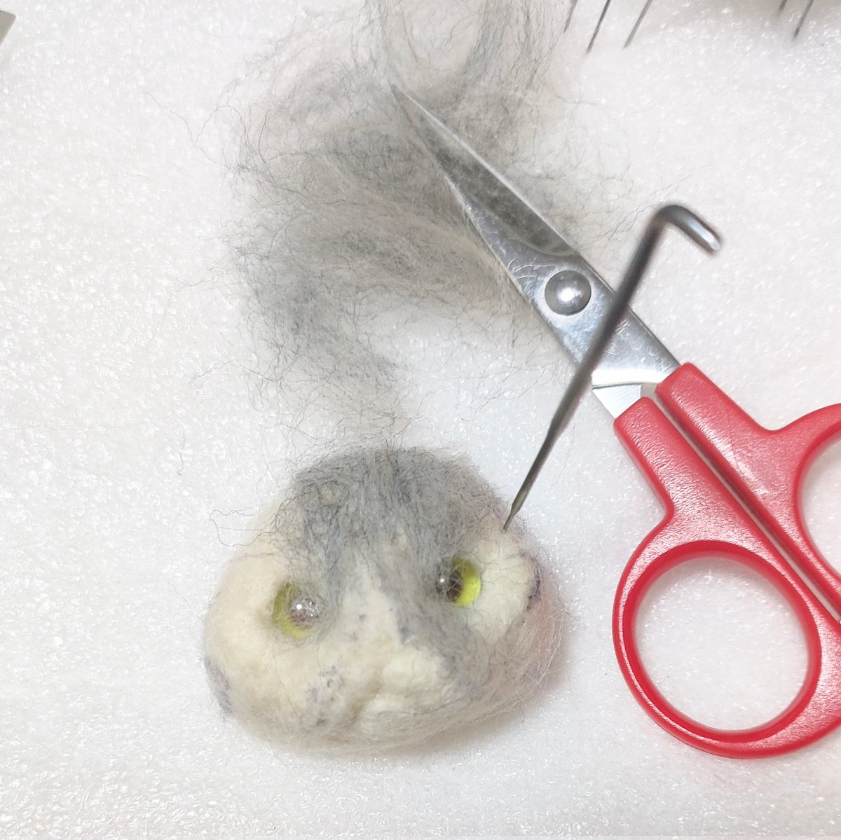 明日、2月22日は猫の日😺♥ 今年は2022年なのでスーパー猫の日だそうですね。 #羊毛フェルト の仔猫ちゃん、明日に間に合うかまだわかりませんが、妥協せずに大切に作ります🥰 植毛中は謎の生き物が生まれます。笑 minne.com/@aneha1 #猫の日 #minne #スコティッシュフォールド #ミニチュア