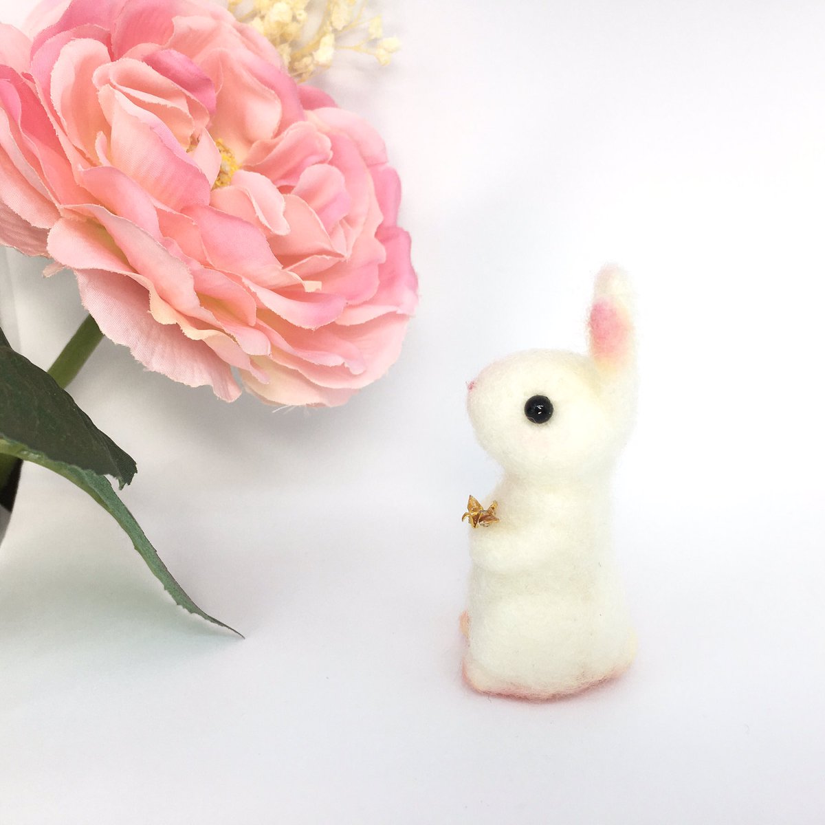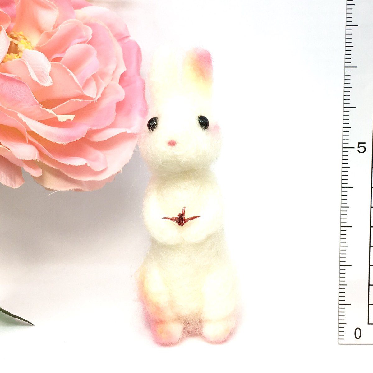うさぎちゃんを送り出しました🐰🌼 入院されている方への贈り物として 折り鶴に願いを込めてお渡しいただけるようです。 私自身、入院は本当に大変だったので 少しでもお力になれると嬉しいです。💐 ショップはsold outですが再販の予定あります🌼→minne.com/items/22311351 #羊毛フェルト #うさぎ