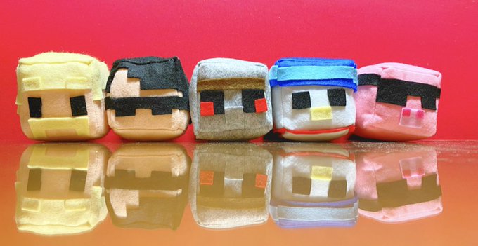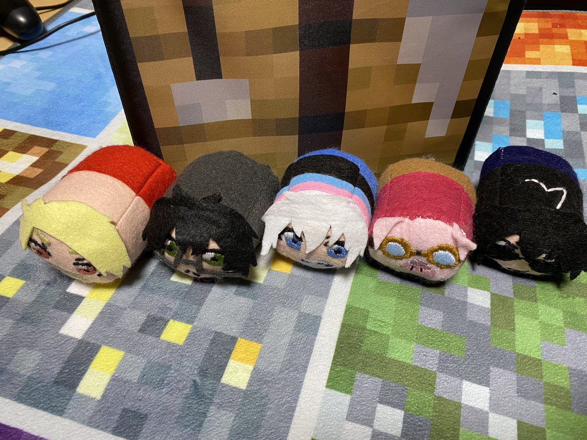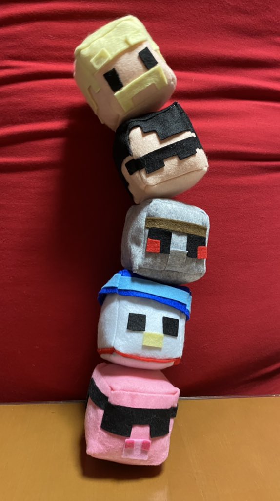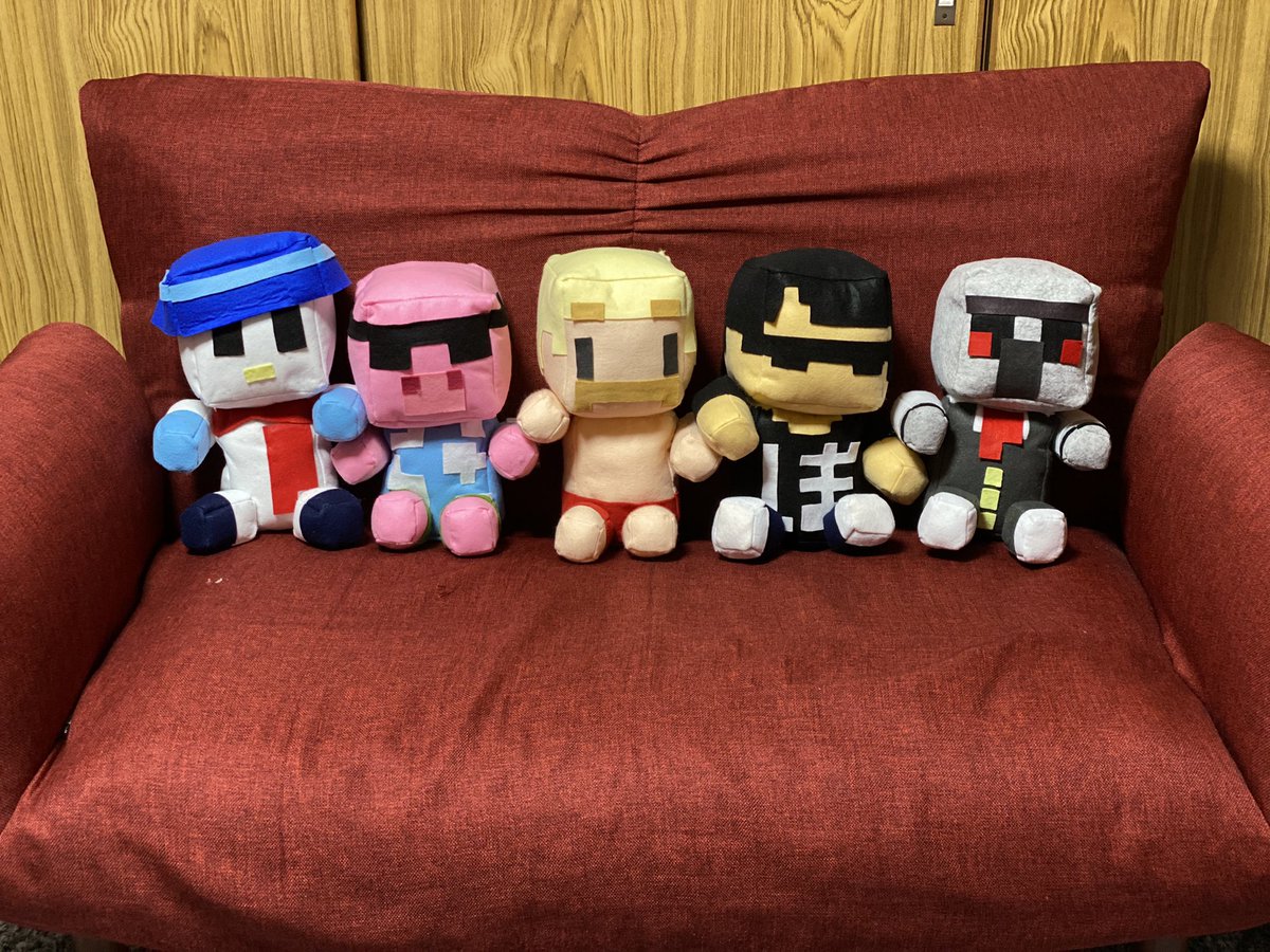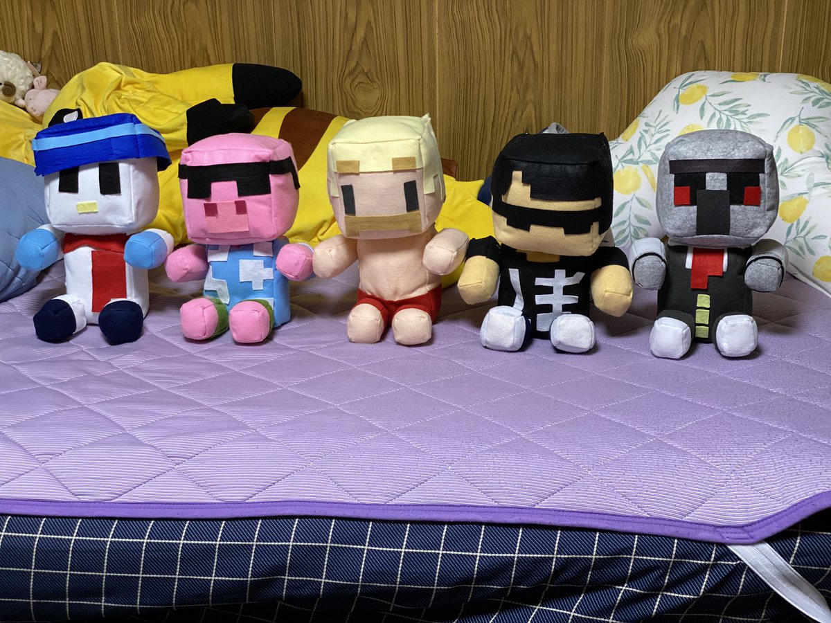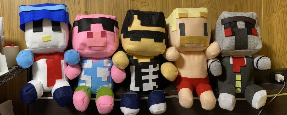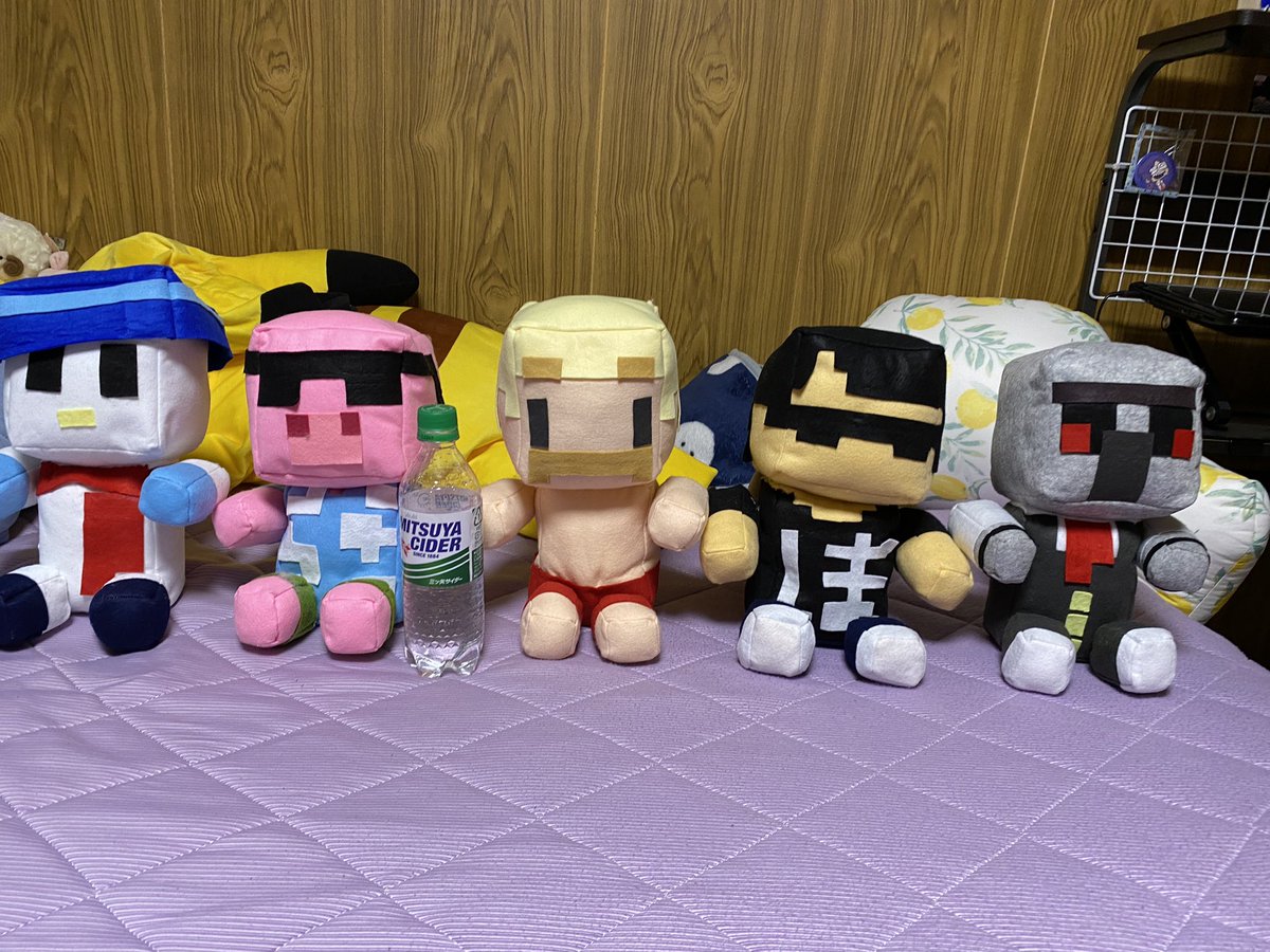 やっとドズル社メンバー全員完成しました!👏 500のペットボトルより大きいマイクラスキンぬいぐるみ☺️ 支えがなくても座ってくれます! めちゃくちゃ可愛い😭 #ぼんさん何してんすか #ドズル社アート #見るかもわからん #はよ見ろやあ #誰でも見れますねぇ #ドズってる
