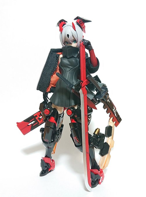54 194 うちのメガミデバイス 紅鴉さんに追加武装をプレゼント! 脚部にブレードを1対装着&遠距離武器としてバーストレールガンを装備させてみました~♪最初に比べると随分ゴツくなりましたが、結構いい感じになったかな、と #メガミデバイス 21/02/25 20:17