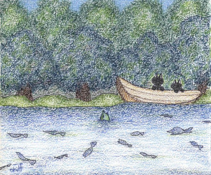 31℃。☀️ 過去作2022年 夏時間。 summertime いっぱいいるじゃん! #イラスト好きさんと繋がりたい #絵描きさんと繋がりたい #アナログ絵描きさんと繋がりたい #芸術同盟 #illustration #黒猫 #cats #ボート #boat