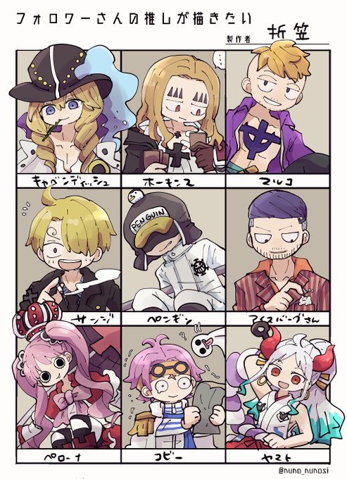 サンジさんとペンギン以外たぶん初めて描きました、楽しかったです〜! リクエストありがとうございました🥳 #フォロワーさんの推しが描きたい