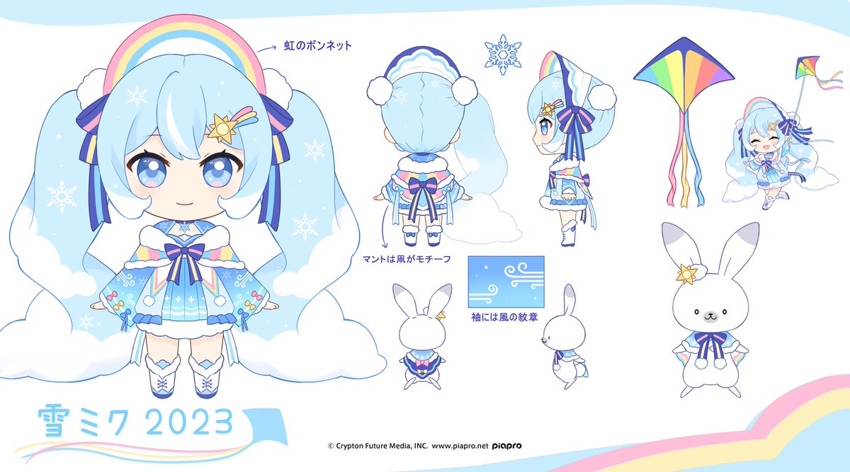 My entry for Snow Miku 2023 - Kite Miku!! 🌈☁️🪁 I hope you will like her~ piapro.jp/t/z6Aq #雪ミク2023 #SNOWMIKU2023