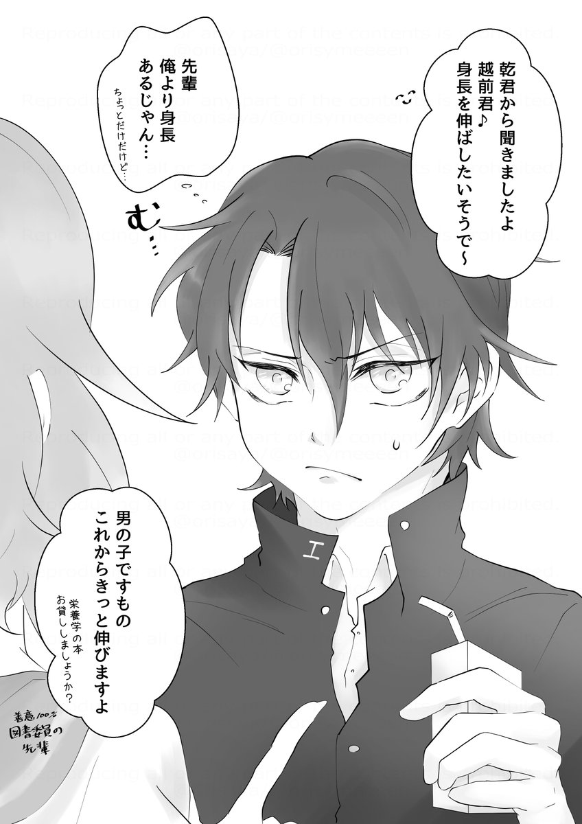 不じ先輩と先輩の彼女と越ぜんリョマが身長の話をする(不じ夢) ⚠️夢主の後頭部 #tnprプラス #テニプリプラス
