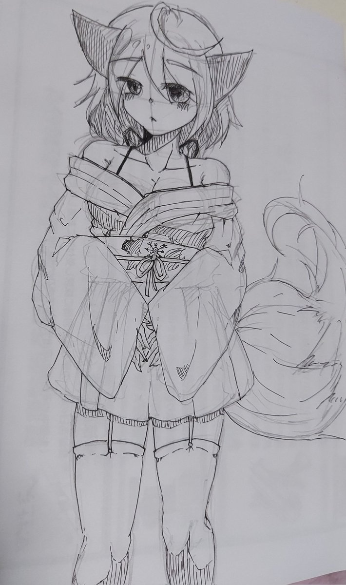 あえてサッと描いて塗ったものにしてみた( ˇωˇ ) たまにはこういうものもアリだね……! コタツで(*˘︶˘*)スヤァ…と実際にしたら風邪引くから止めようね…!🤣 #宵月ゆきあ #よいゆきあーと #ねぇねぇゆきあちゃん