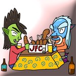 チキンを食べるロカラとブルカンの絵を描きました。 ハースストーンを題材にクリスマスっぽい絵を描こうとしたらこうなったんだ信じてケロ