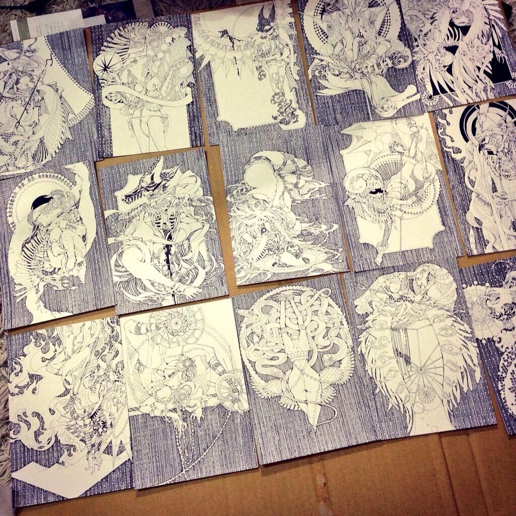 🧠新刊サンプル🫁 🫀スクラッチアート臓器本🦷 臓器、内臓モチーフのイラスト集。初スクラッチアート本です。 表紙エンボス用紙ICHIMATSUのため、サンプルはイメージです。 イベント後にアリスブックス通販予定しております。 #北ティア #北海道コミティア pixiv.net/artworks/10920…