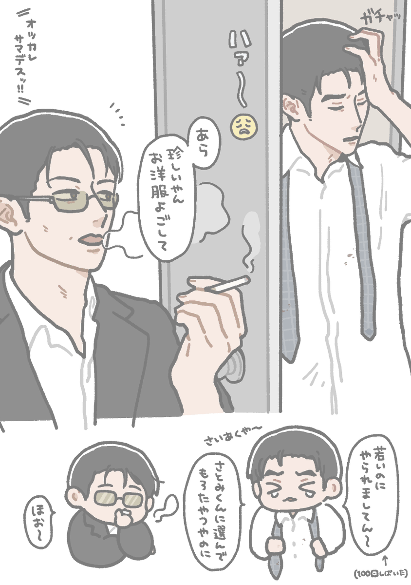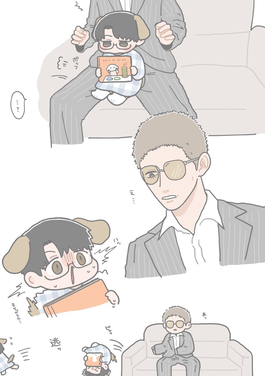根菜さんのツイート(twitter.com/renkon_tenpura…)の若頭といぬみくんをちょっとだけ描かせていただきました🙏🐶🛋️