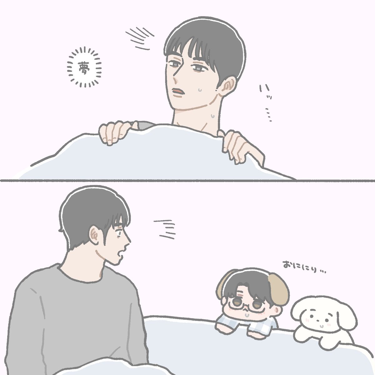 54 260 リクエストいただいてた「お兄ちゃんになったいぬみくん(夢オチ可)」です ありがとうございました🐶🍙☺️ 23/01/30 00:40