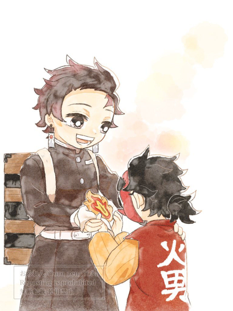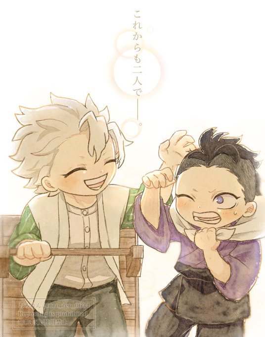 💠休日の散歩💠 こちもちゃん(@kcm_umi )と合作させて頂きました! ラフ、煉さん線画→こちもちゃん 🧹くん線画+塗り→おろれん