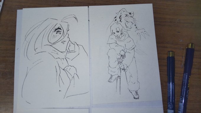 FGOより、アルジュナを描かせていただきました(筆ペン)。爆発したような表情、すごくいい笑 「カルナァァァッッ!!」 せっかくなのでカルナ(再掲)も添えます。 #FGO #カルナ #アルジュナ #冬の創作クラスタフォロー祭り #絵描きさんと繋がりたい