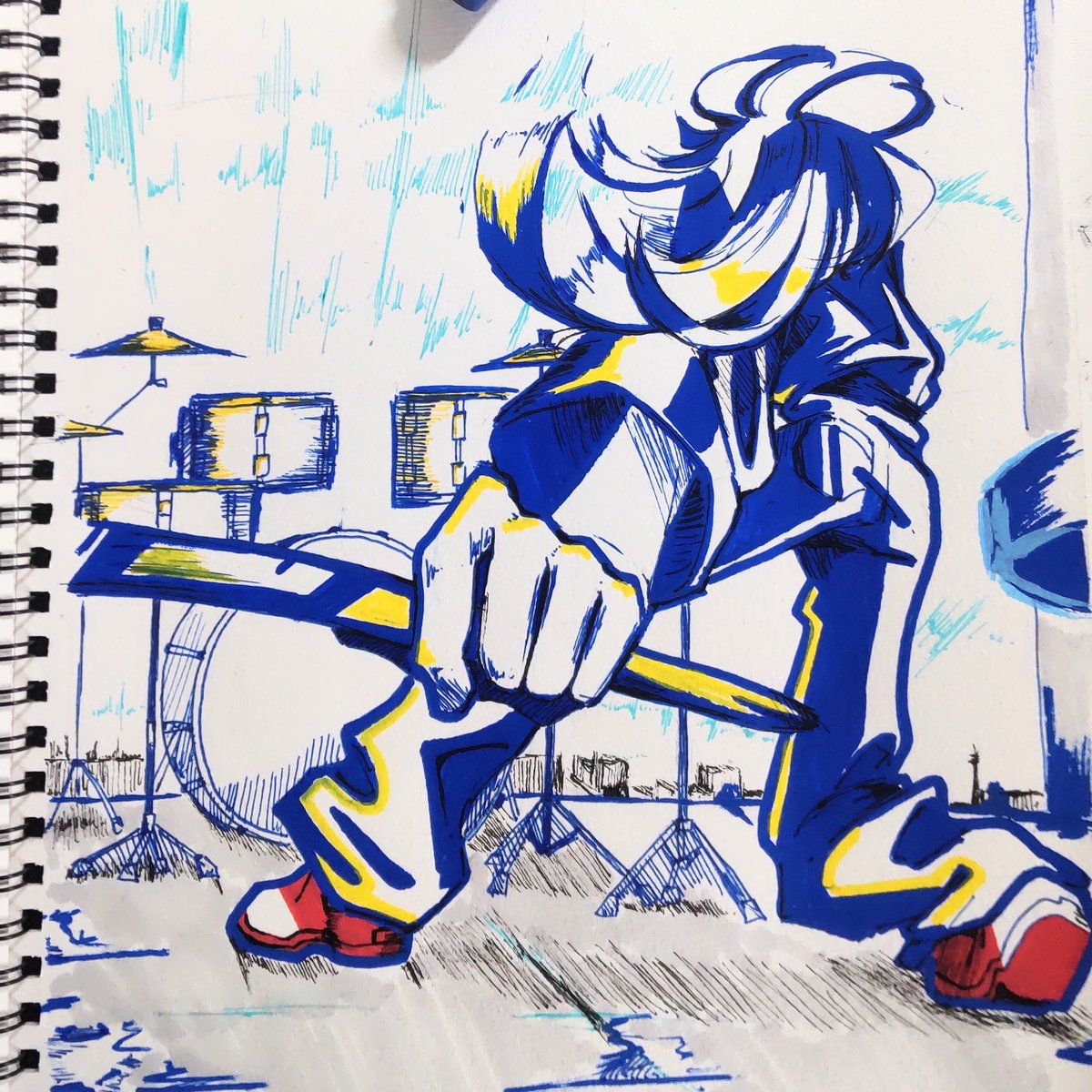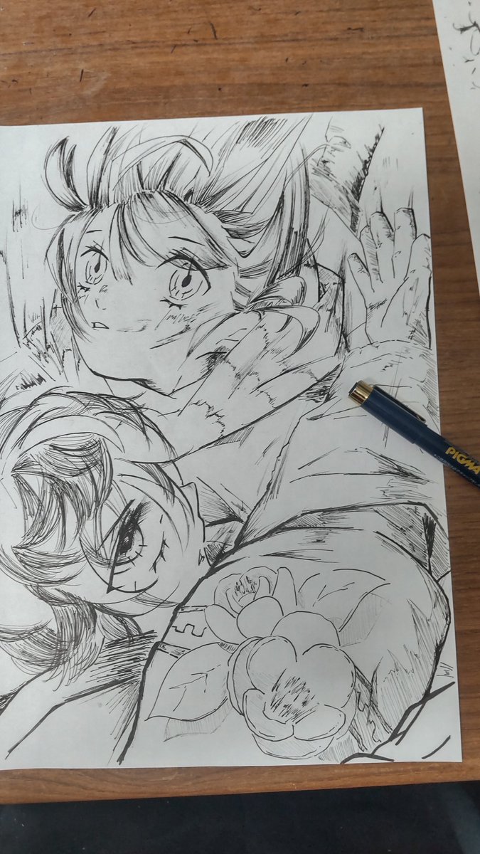 wip "地面めがけてピースしよう" これから色塗り、ウォォー💪 #君が飛び降りるのならば #絵描きさんと繋がりたい #夏の創作クラスタフォロー祭り #絵柄が好みって人にフォローされたい #アナログイラスト #ボカロ