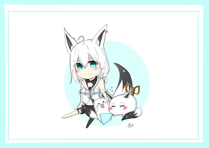 初描きフブちゃんとねむねむなネジマキツネ🌽 #絵フブキ