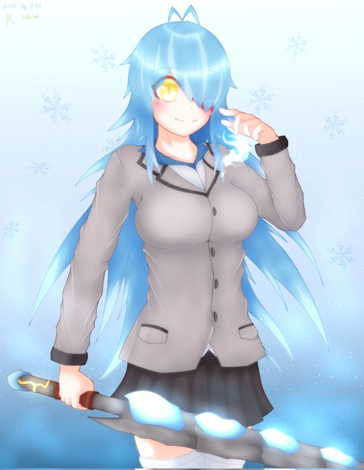 でけた、最近ホットらしいから冷たい色の凪ちゃ書いたんだ #イラスト #イラスト好きと繋がりたい #創作クラスタさんと繋がりたい #暑いので涼しげな画像を貼る #オリキャラ