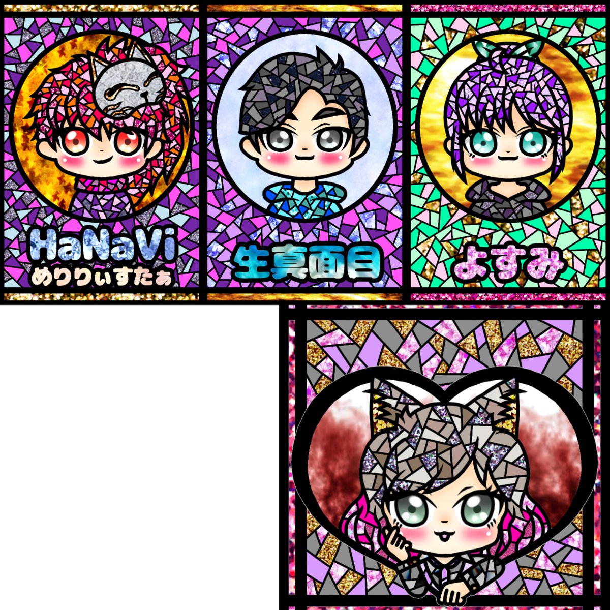 @amesyo_nyanko すみません!3億年ほどお待たせしてしまいました! やはりあめしょさんにはハートか!という安直な考えのもと別デザインをステンドグラス風に… 前回より大人っぽいイメージ!…が出せてたら良いなぁw #めしょアート