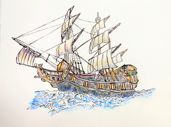 帆船🚢 半日かけて描いた… うぅんまだまだやなぁ💦 #帆船 #帆船絵 #帆船イラスト #船 #船イラスト #イラスト #絵 #色えんぴつイラスト #色えんぴつ絵 #イラスト好きな人と繋がりたい #絵描きさんと繫がりた