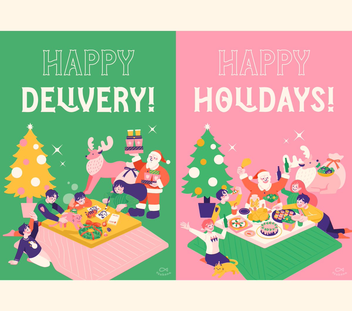 年末は忙しいので サンタさんにデリバリーをお願いしてました🤲🎅🛵🥡 HAPPY DELIVERY !🛵 HAPPY HOLIDAYS !🎁✨ #Christmas2021 #Christmas #MerryXmas #HappyHolidays #illustration #クリスマスイラスト twitter.com/osakana_b/stat…