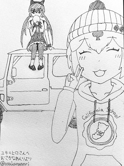1 4 ユキ=ヒロさんに贈らせていただいたカリフォルニアラッコちゃん&ランドクルーザーという車(ついでにアリサちゃん)のイラストです おでかけ衣装がお気に入りらしいので描かせていただきましたッ 23/03/31 20:51