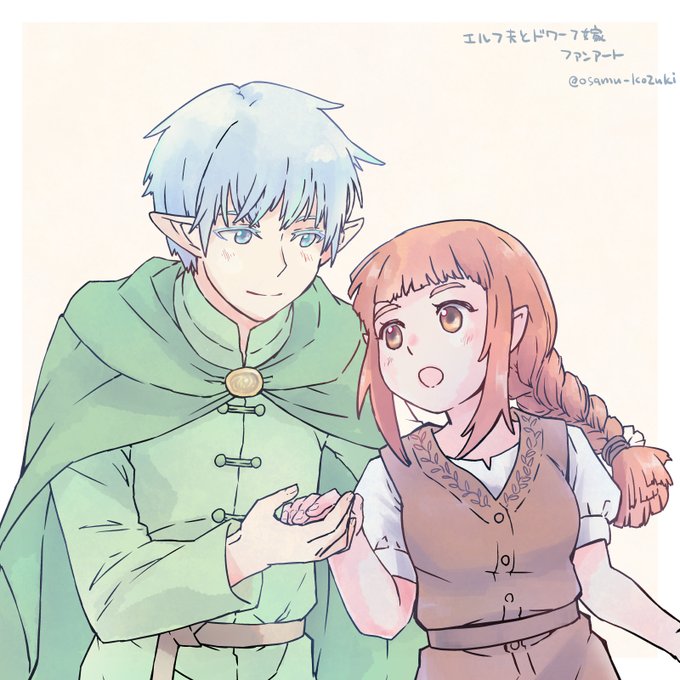 4 17 小松良佳先生の「エルフ夫とドワーフ嫁」のファンアートを描きました。植生豊かな草原をしっかり歩んでいくような、地に足のついた物語です。毎回読んだ後に穏やかに心が満たされて、次回が待ち遠しくなります。 23/06/17 02:17