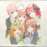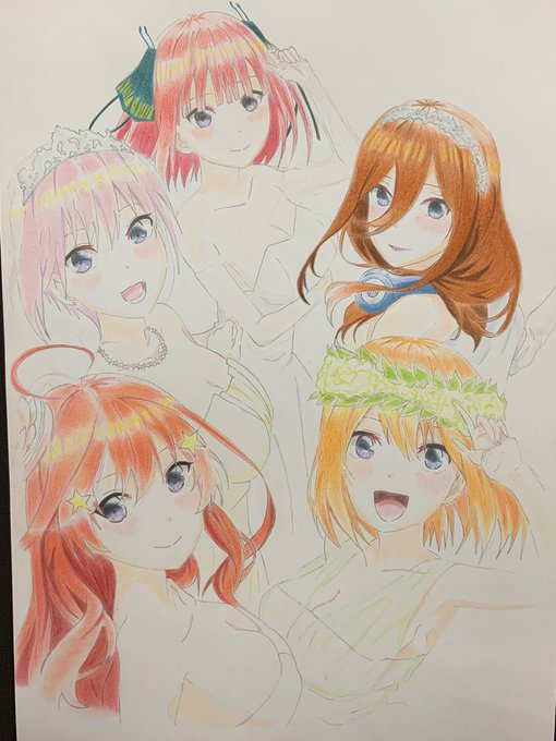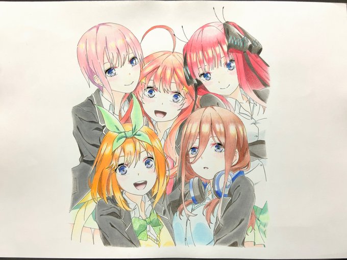 完成〜 五つ子ちゃんの集合絵描きました! #五等分の花嫁 #色鉛筆 #五等分の花嫁記念日