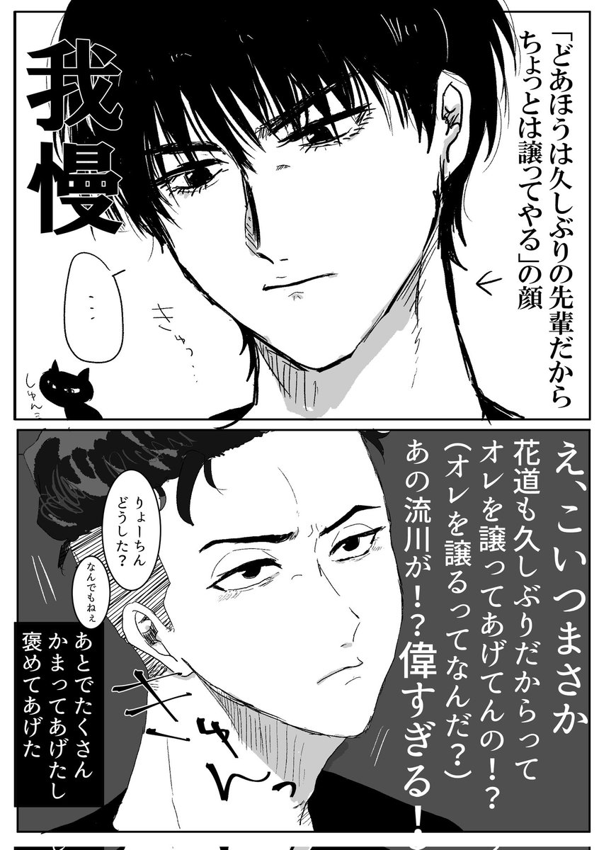 流リョ/我慢する流( `ᾥ´ ) 原稿の合間に落書きしてたやつなのでペンのサイズがバラバラですみません