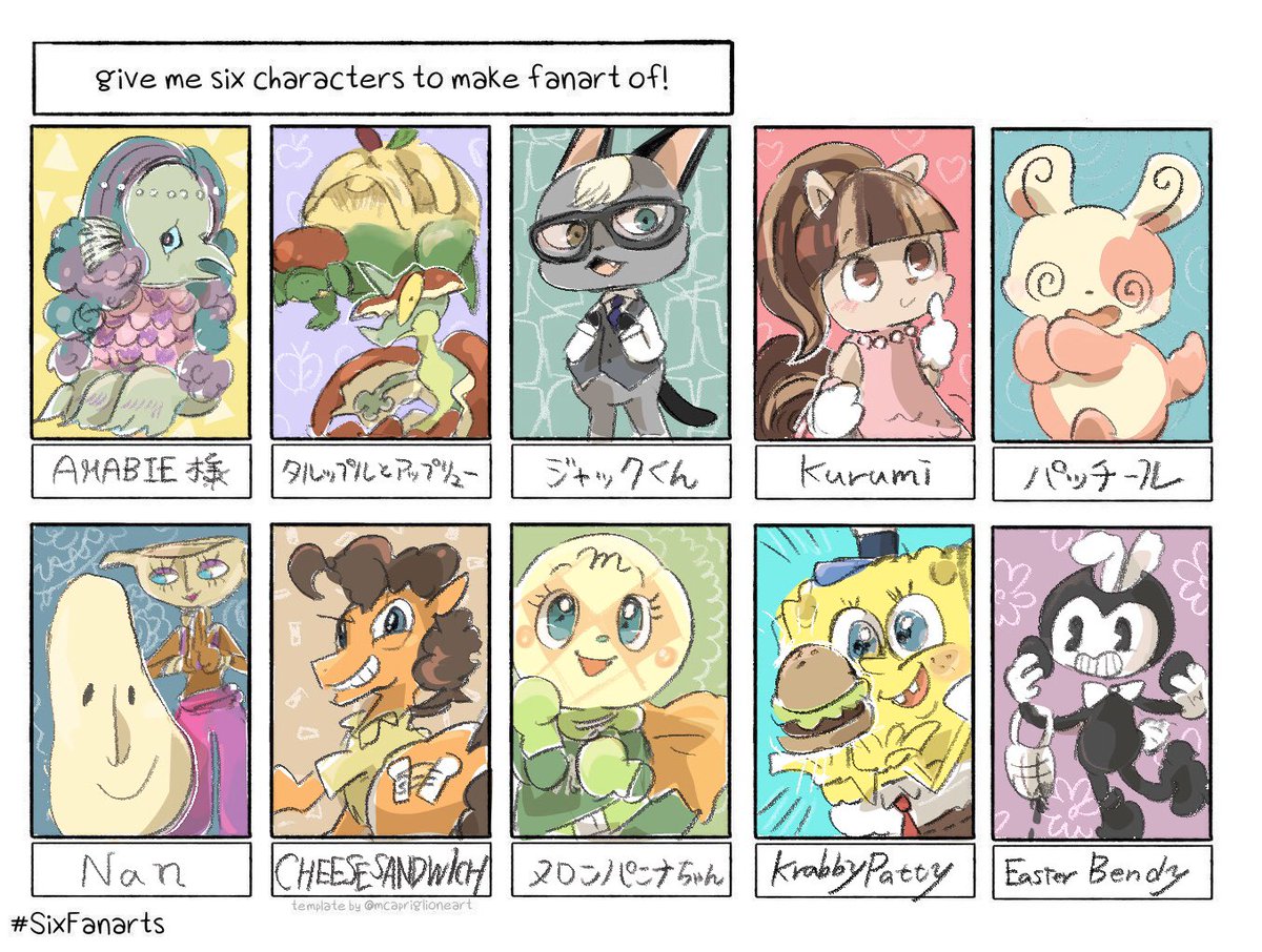 16 66 めっちゃくちゃ楽しかったです お題ありがとうございました! ※下段は自分で選んだパンの日とベンちゃん #SixFanarts 20/04/12 22:52