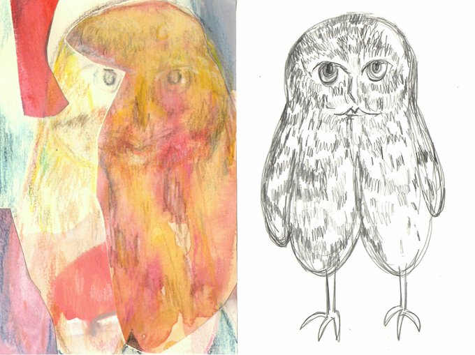 フクロウドローイング #アート #デザイン #ドローイング #イラスト #イラストレーター #スポンジ