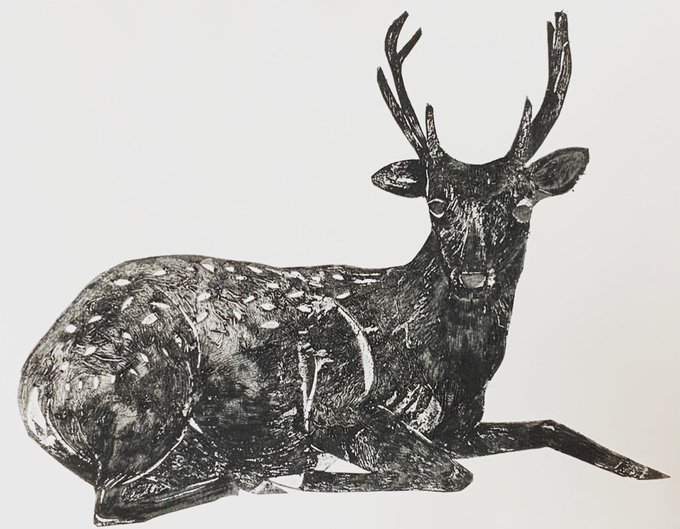 7 115 紙版画 #版画 #紙版画 #鹿 #アート #デザイン #ドローイング 22/07/30 20:38