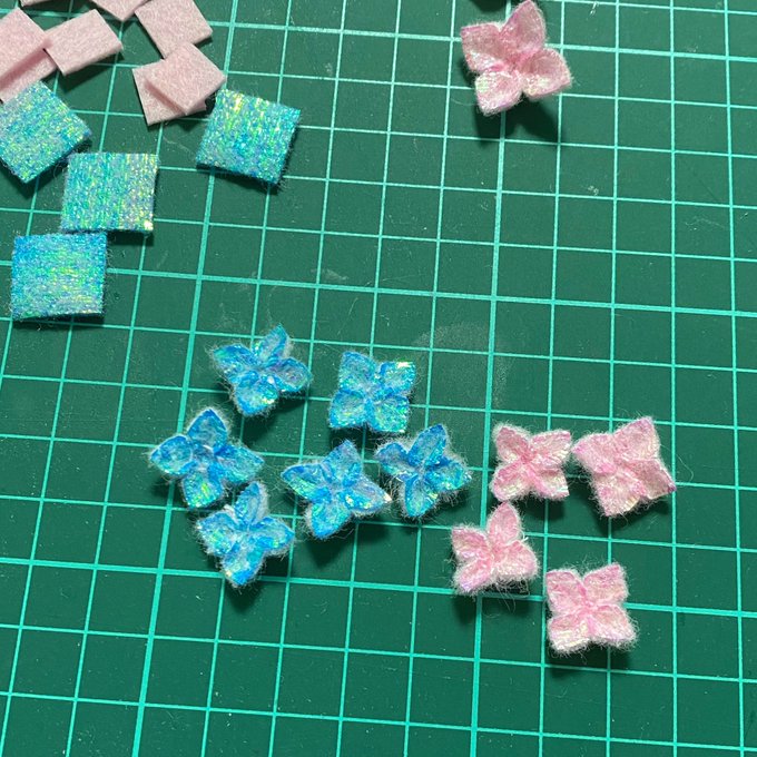 キラキラのフェルトで 紫陽花を作る様子を 動画で公開しています ぜひご覧ください*.+゚ 【フェルト】紫陽花の作り方 youtu.be/nxk2JwCFNrA #羊毛フェルト #ハンドメイド #ハンドメイド好きさんと繋がりたい #ハンドクラフト #手芸 #youtube #メイキング
