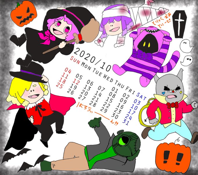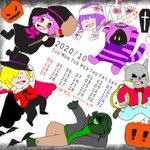9 102 間に合った!恒例のカレンダー絵🙌🏻 大事な日付が見ずらくてすみません~ テーマは大好きなHalloween🎃!! #bintrollFA #毎日びんとろチャレンジ 20/09/30 20:52