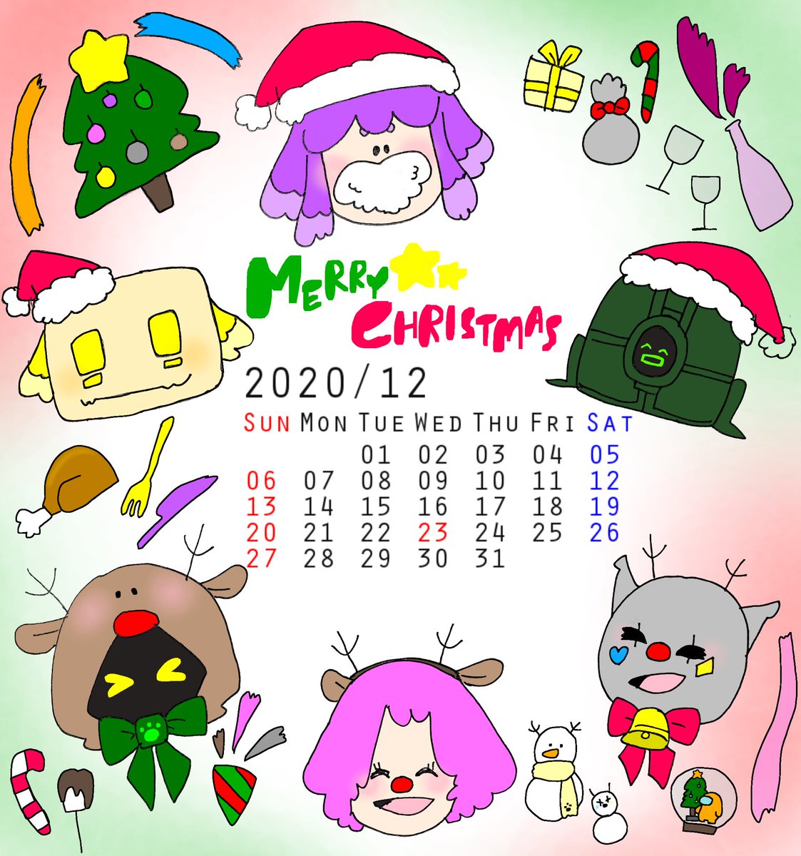 5 107 描けた!\( ·ω· )/ 今年最後のカレンダー絵🎄 (来年は本気で壁掛けカレンダー作りたいなぁ、と思うだけ思ってる🤔) #bintrollFA #毎日びんとろチャレンジ 20/12/01 00:11