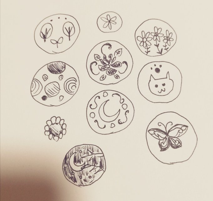 ボタン案。材料は樹脂粘土。乾燥させるタイプのだと水に弱いからポリマークレイというオーブンで焼くやつを買うつもり。今はダイソーの樹脂粘土で練習中。1m以下の細かい作業。難しい #イラスト #落書き